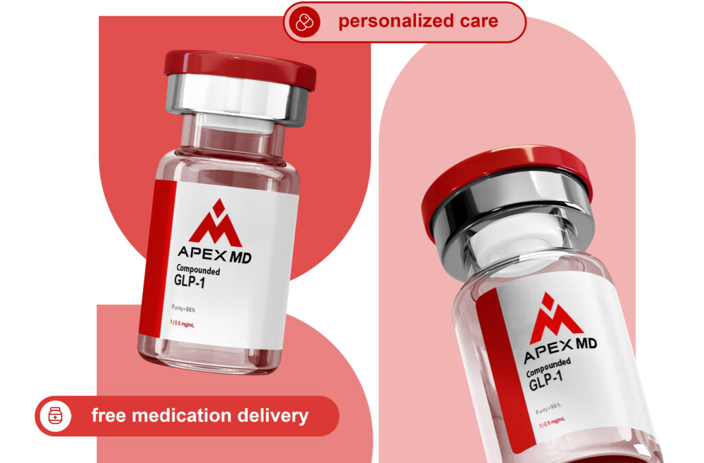 We have an in-depth questionnaire allowing our medical providers to know what your goals are and starting point. A 1 on 1 synchronous visit with the medical provider further dials in the right additives of amino acids, mitochondrial energy boosters and vitamins that are best for your GLP-1 mix. After you begin your GLP-1 journey we have routine bloodwork, that’s included in your monthly cost, that given even a further look into the condition of your body to customize your ideal GLP-1 mix. With Apex MD, as your body changes metabolically so do your GLP-1’s to optimize you every step of the way.
